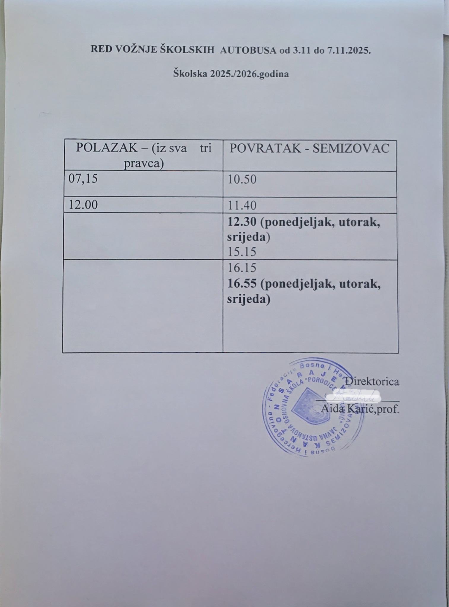 Javni poziv za vanlinijski prevoz redovnih učenika JU OŠ “Porodice ef. Ramić” Semizovac