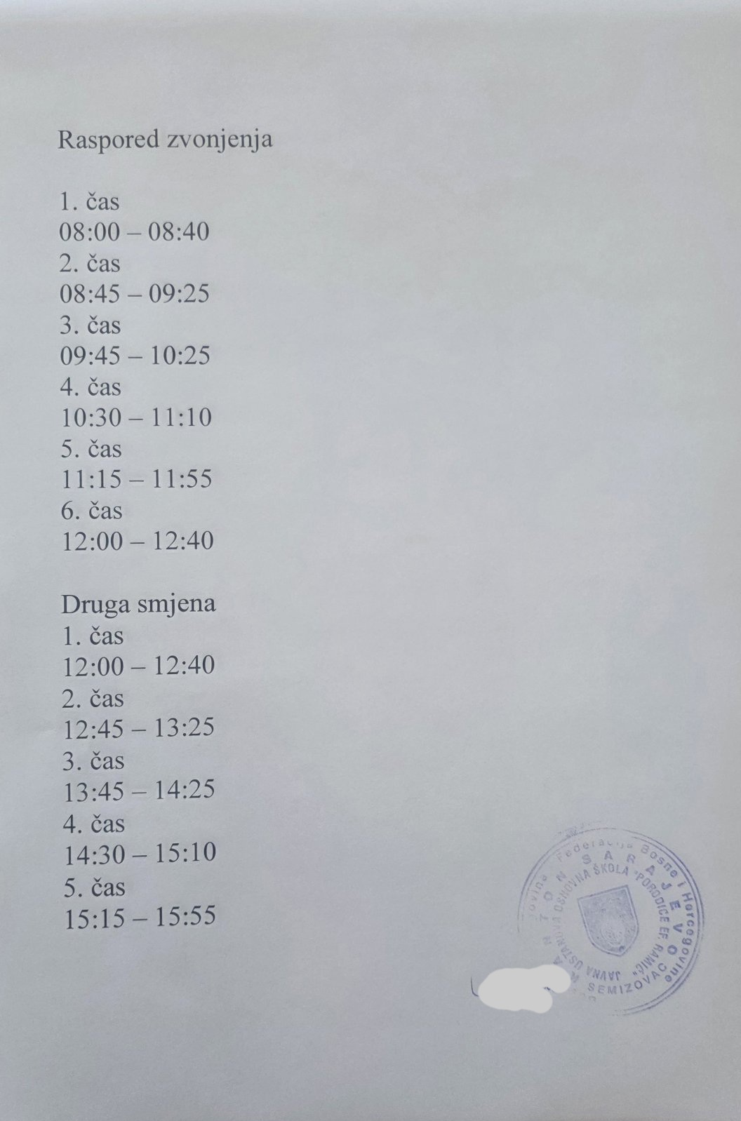 Raspored časova šk.2025/2026. god.