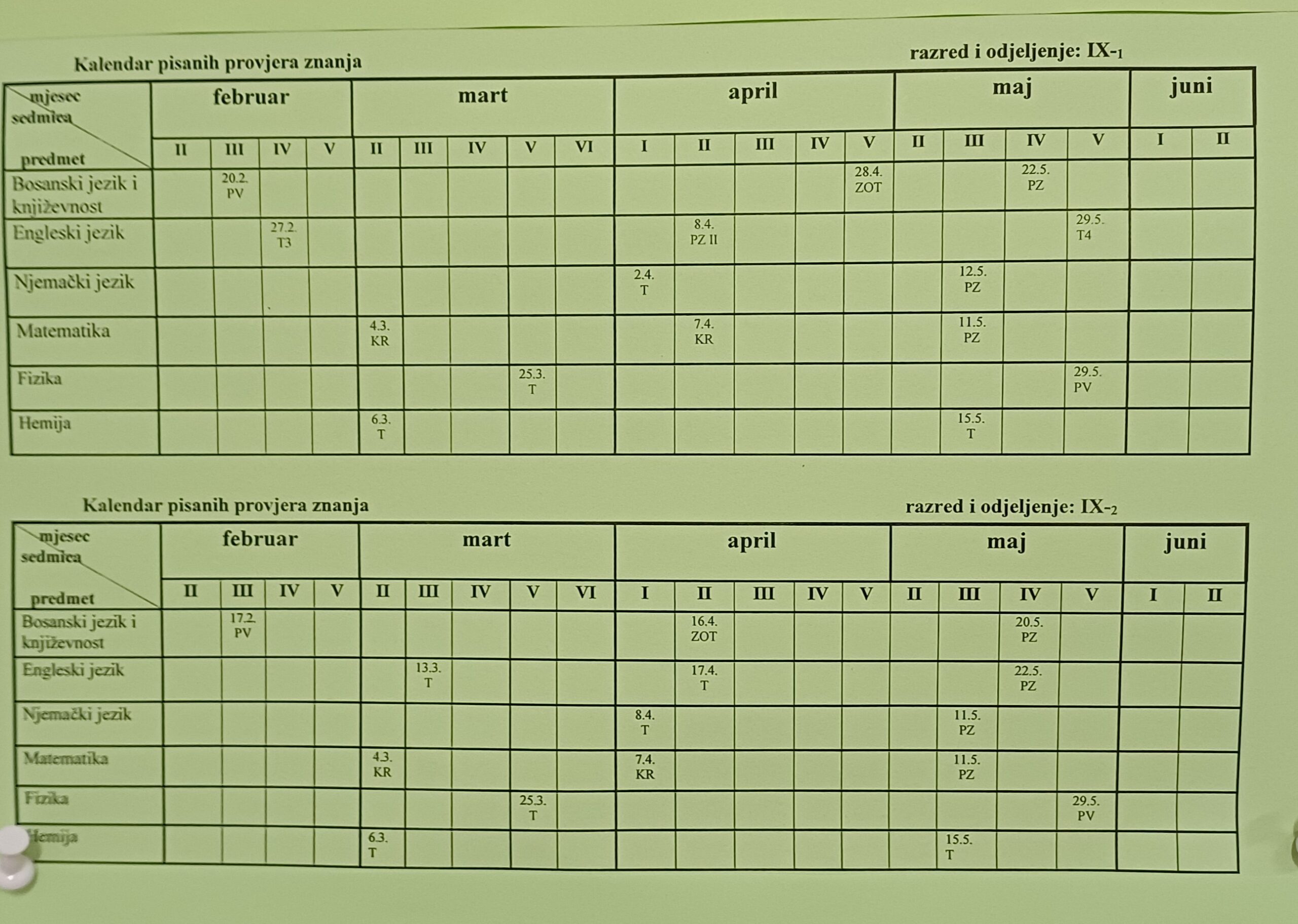 Plan pisanih provjera za šk. 2025/2026.god.