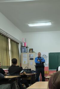 Danas su u našoj školi, na času Odjeljenske zajednice u IX-2 odjeljenju, policijski službenici ispred MUP-a Kantona Sarajevo i Policijske uprave Vogošća, održali predavanje na temu: “Zloupotreba pirotehničkih sredstava”. Cilj je učenike upoznati s opasnostima korištenja pirotehničkih sredstava što za posljedicu može imati ozbiljne povrede, ali i izazvati veliku materijalnu štetu. Primjena pirotehnike podrazumijeva kršenje zakona KS zbog narušavanja javnog reda i mira i predviđena je novčana kazna. Učenici su sa velikim interesovanjem pratili ovo predavanje kako bi mogli upozoriti sve one koji krše zakon i čine takva sredstva dostupnim maloljetnicima.